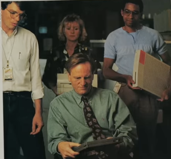 Sculley would often come to the lab, and on this visit, he came with a media handler and photographer. Suddenly I was standing there, posing, handing him the prototype Sweet Pea hand-held CD-ROM player that we had created in the CIL. Not Penlite or Newton. They asked me for some others to be in the picture, so I rounded up Rod (Perkins) and Caroline (Henton), who was working on text to speech technology, in a cubicle near me in ATG. I must say it looks a little goofy with Rod holding a random desktop ‘pizza-box’, and me trying to explain to the CEO what he was holding. In retrospect he didn't care. The goal was to show a sneak peek of something. After these visits, my manager would call me in his office and grill me on why Sculley was visiting my lab and that in future, I needed to let him know. Given that I never knew when Sculley was coming. I didn't understandwhat my manager needed me to do or why he was so concerned given that he reported to Dave Nagel who didn’t care, in fact I think Dave liked it.